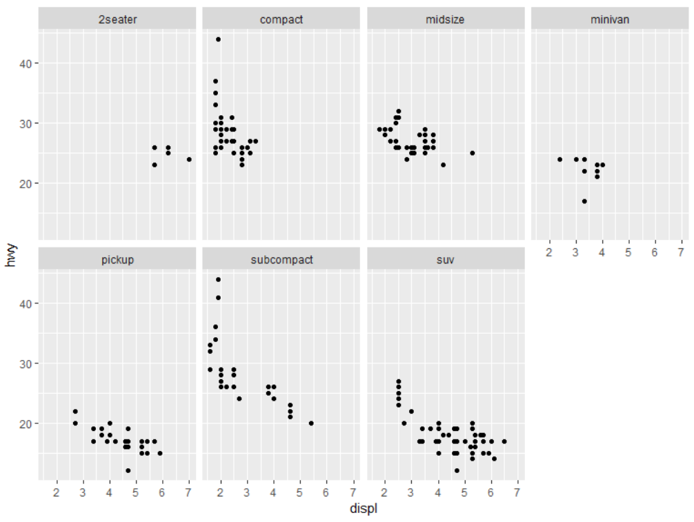 facet_wrap(~class, nrow=2) #class에 대해서 각각 면 분할로 보고싶다!!(class변수는 범주형입니다.)